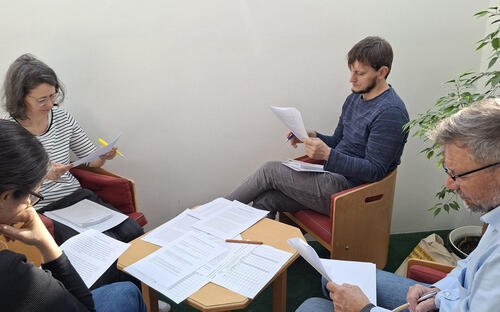 Der Dienstag ist dem Lesen der Essays gewidmet. Die Lehrer:innen lesen in Vierergruppen. ...