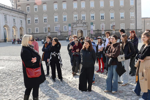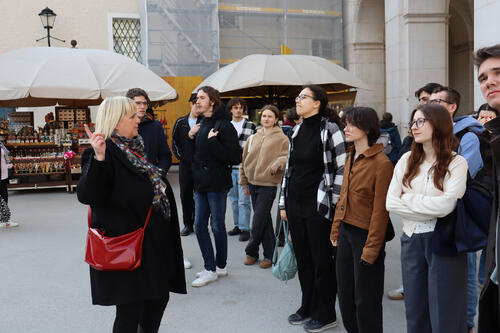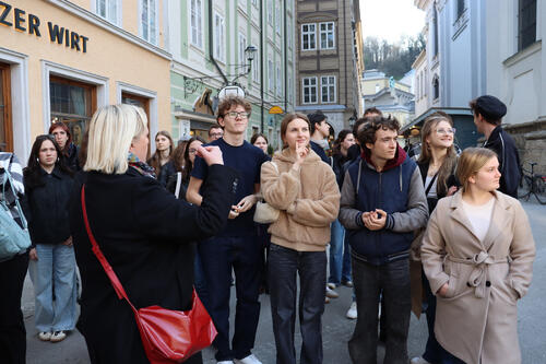 Die Schüler:innen bei der Führung durch das Zentrum der Stadt Salzburg